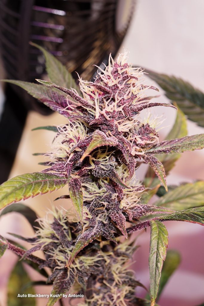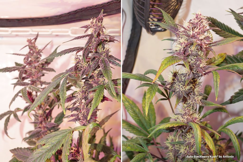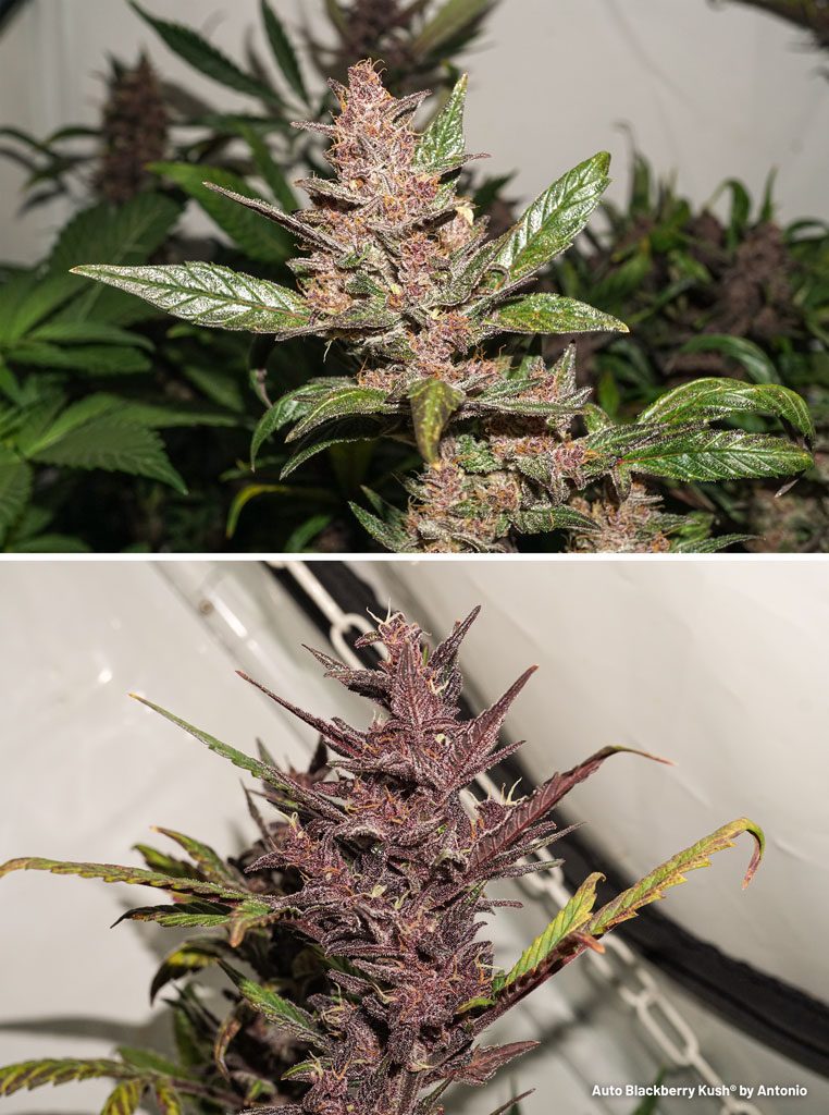 Auto Blackberry Kush in bloom, beautifully coloured buds