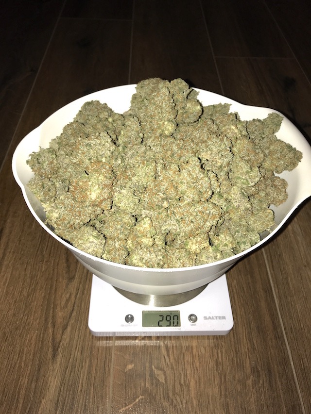 “Many auto growers using modern LEDs with impressive outputs keep the lights on 24/7 until harvest. While this has a positive effect on yield, I’ve found that too much light tends to affect terpene production in a negative way. The aromas and flavours just never reach their potential… the cure takes so much longer for them to be revealed. For the last 3 weeks, I dropped my light cycle to 12/12. This seemed to have almost no impact on yield… but the gain in terms of smell and taste is so worth it. I flushed for 14 days, using pH adjusted water and Advanced Nutrients Flawless Finish”